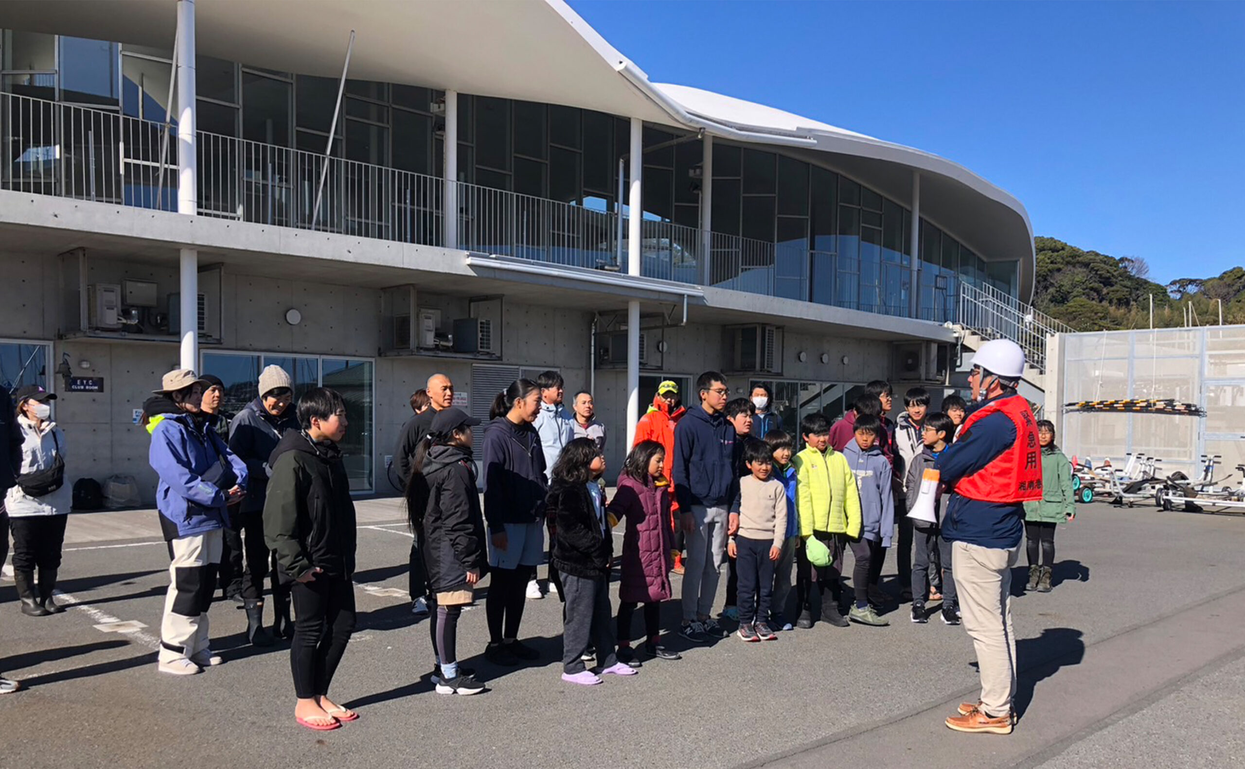 江の島ヨットハーバーでは、日頃より非常時を想定した避難訓練等を定期的に実施し、安全第一に運営しています。日頃からの備えと避難場所等のご確認をお願いいたします。
