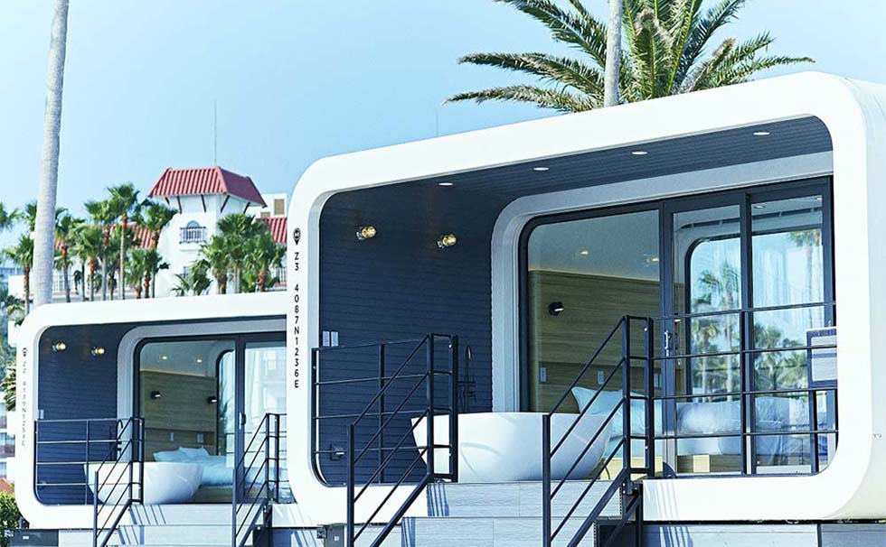 日本初の近未来デザインが目を引くトレーラーホテルです。刻々と変化する幻想的なサンセットなど地球・宇宙を感じる非日常空間で、時間の移ろいを堪能いただくため前面ガラス窓を採用した客室は、全棟オーシャンビュー。海を眺めながらセルフロウリュができる宿泊者専用のオーシャンサウナもお愉しみいただけます。