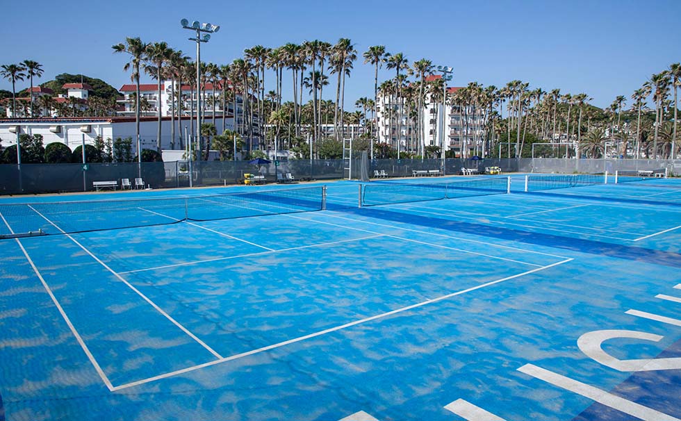 テニスコートは、人工芝に砂を混ぜたオムニコートを使用した本格派。潮風が心地良く感じられます。