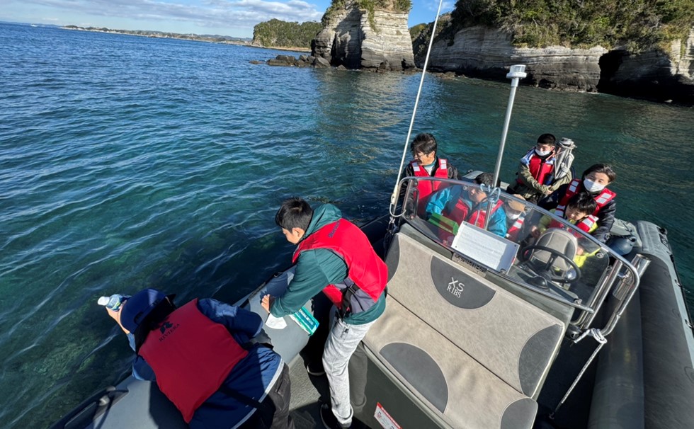 穏やかな小網代湾をボートに乗りクルージング。小網代の森や地形を海から見て、環境を学びます。